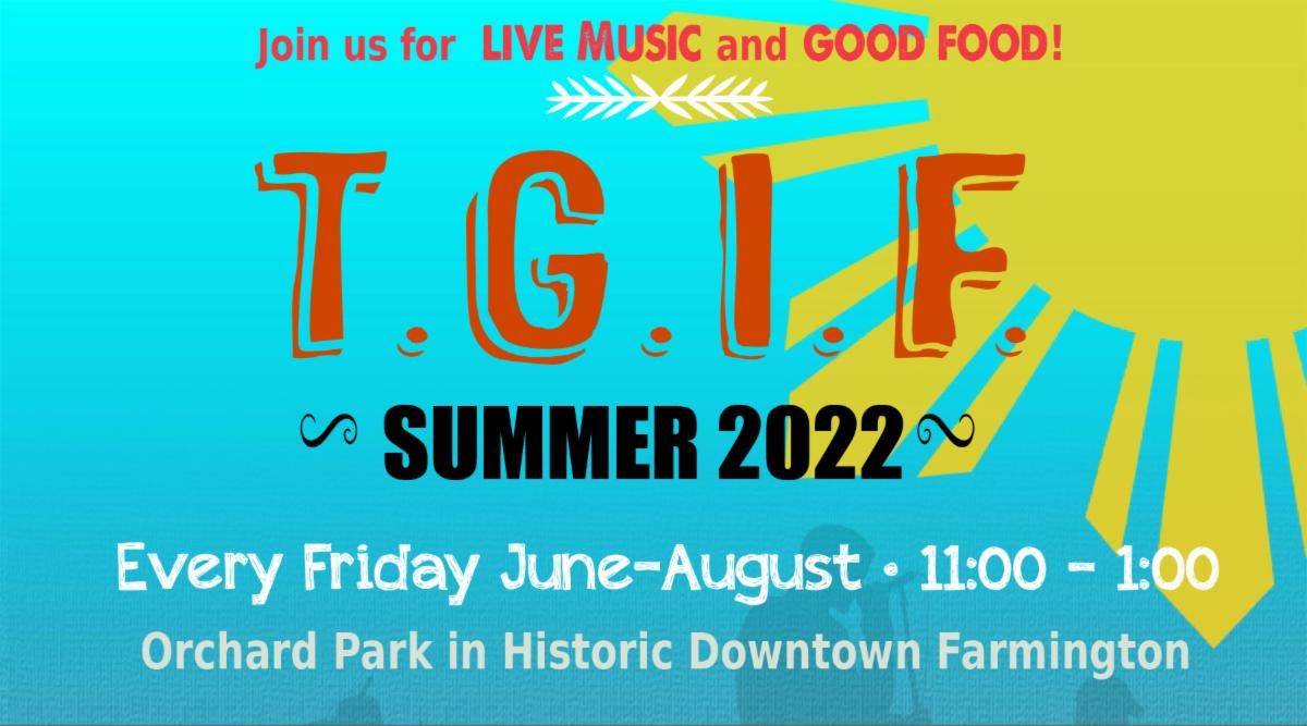 • T.G.I.F. - Food & Music Every Friday through August 26