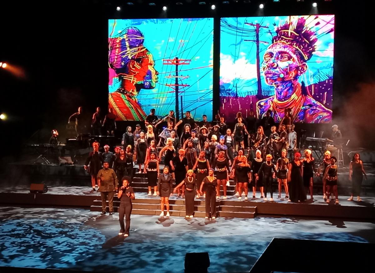 “For this ambitious concert I used the Joburg Theatre’s Hippotizer Boreal+ MK2 to drive content from various sources including textile patterns, traditional embroidery and AI-generated art to its large LED screen,” says Disbergen. “It is imperative that the lighting and the video content work together. With an amazing tool like the Green Hippo, colour adjustments and artistic modifications can spur the creation of a novel lighting state and vice versa. Often, an archival image can be changed into line drawing or adjusted to match the mood and colouring of the stage performance. Combining LED screen and mood lighting transforms a static stage into a rich jazz club with warm select lighting, key focal spot, and a minimalist pink neon glow from a thin horizontal line at full punch.”
