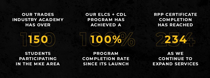In partnership with Gilbane, we held a successful training and work experience opportunity at MATC Walkers Point. We recruited and trained 12 participants and are currently working on connecting them to ongoing construction projects at the Wisconsin Center.