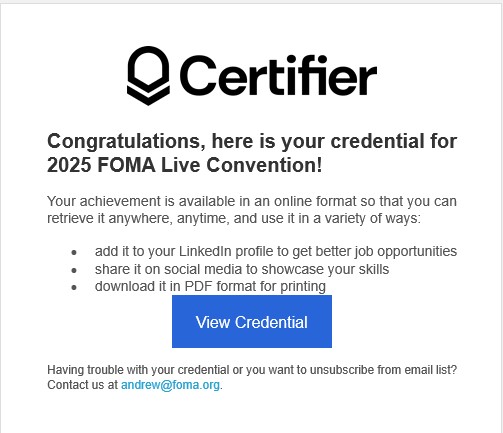 Thank you for your support of the FOMA !