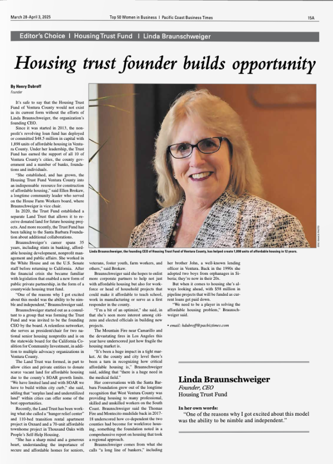 Linda Braunschweiger, CEO of Housing Trust Fund Ventura County and Housing Land Trust Ventura County, has been active in Sacramento and Washington, D.C., recently as she joined other statewide and national leaders to advocate for critical policy priorities, including funding, a statewide housing bond measure, and equitable housing solutions.