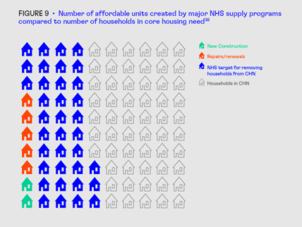The National Housing Council Secretariat contracted Blueprint ADE to analyze the alignment of National Housing Strategy programs wit the needs of those experiencing core housing need and homelessness. The report is available here Here are 5 things to know about the findings: - The National Housing Strategy unilateral rental housing programs have approved $8.3b in loans and $2b in grants to date. The majority of loans have gone to private developers and the majority of grants to municipalities (1/2 of the grants to the City of Toronto to repair Toronto Community Housing).\