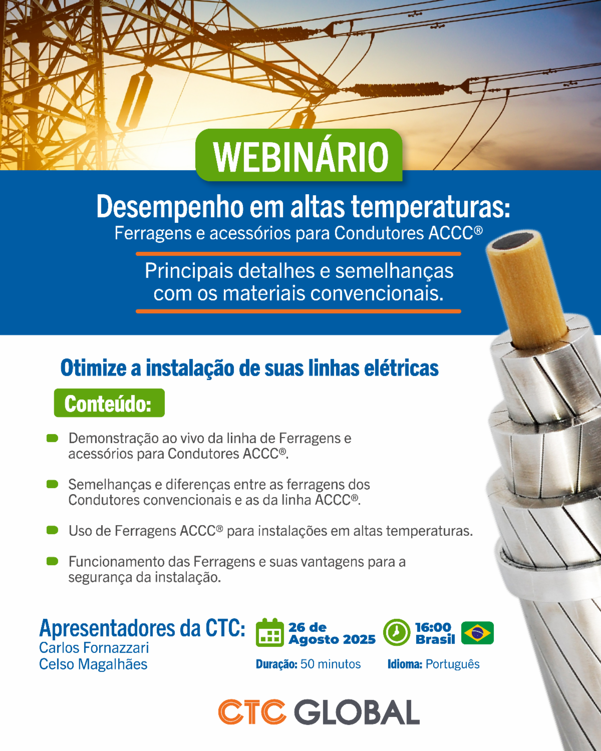 Participe para conhecer as inovações mais recentes — incluindo como o Condutor ACCC® da CTC Global está ajudando operadores de rede a aumentar a capacidade, reduzir perdas e modernizar a transmissão sem necessidade de novas infraestruturas. etsconference.org