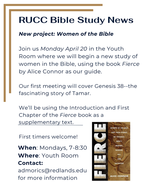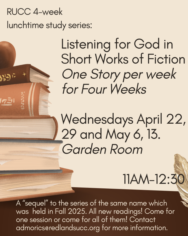 | | RUCC Lunchtime Study Series | | Copies of the first reading, "Listening for God series," are in the office for your convenience. | |