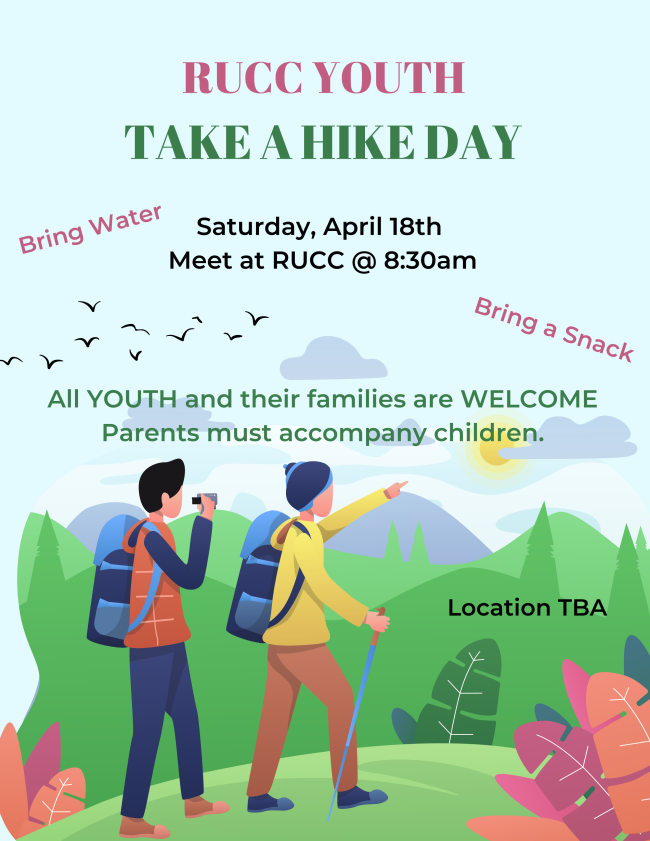 | | RUCC Youth Hike Day, Saturday, April 18 | |