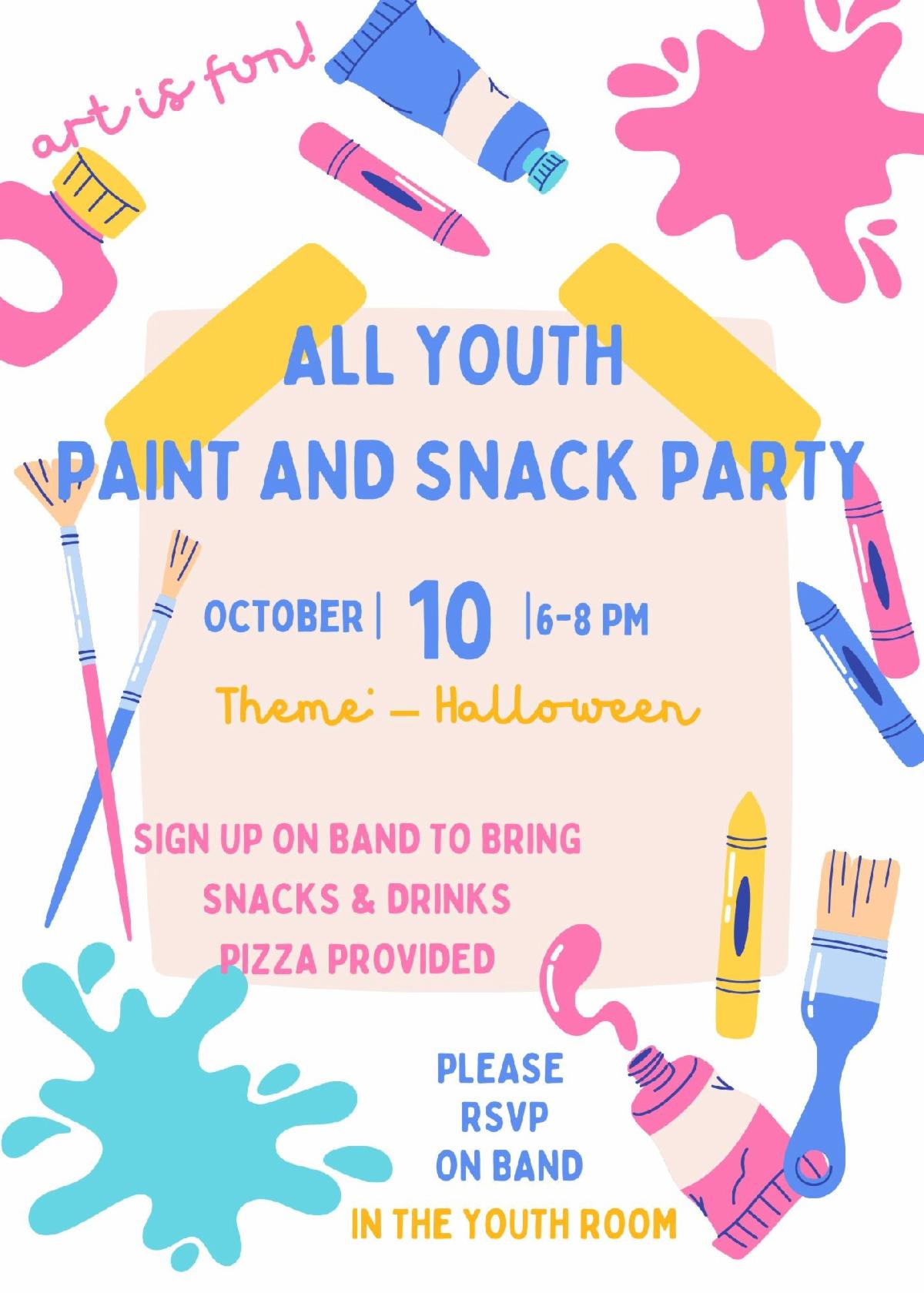 - 6:00 to 8:00 p.m. - Youth paint and snack party