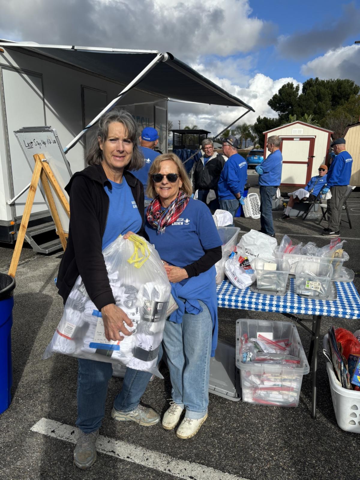 Volunteers at "Refresh and Renew" graciously accept the donation of over 100 pairs of socks to make available to their clients, who appreciate fresh, clean socks after a shower.