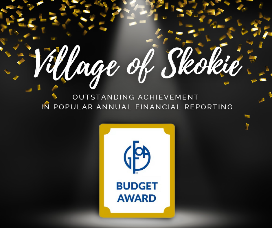 The Village of Skokie is proud to announce that it has received the Government Finance Officers Association’s (GFOA) Award for Outstanding Achievement in Popular Annual Financial Reporting (PAFR Award) for its Popular Annual Financial Report for the fiscal year ended April 30, 2021. This is the first time that Skokie has received the PAFR award which encourages local governments to extract information from their annual comprehensive financial report to produce high-quality financial reports that are designed to be readily accessible and easily understandable to the general public and other interested parties without a background in public finance. Click here to view a copy of the FY21 PAFR along with the Village’s annual budget and other financial reports.