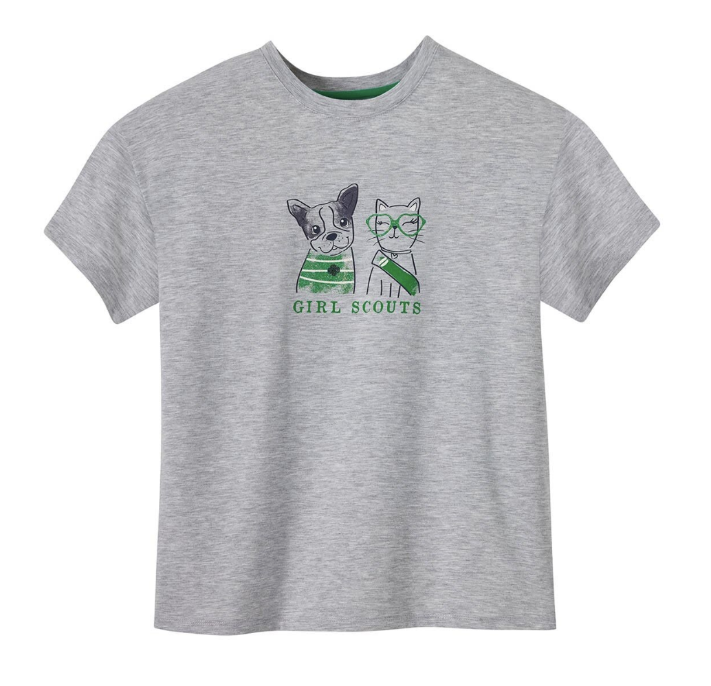 | | Calling all dog & cat lovers! Who can resist the irresistible charm of a playful puppy and a curious kitty showing their Girl Scout pride? This charming t-shirt features endearing puppy and kitty graphics with crystalline detailing. Go ahead and show your love for furry friends while spreading a little sparkle and style wherever you go. | | Feature Your Girl Scout Troop! | | |