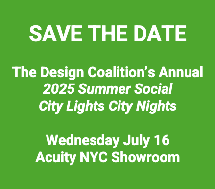 Looking just beyond June, the NY Design Coalition, a collaborative partnership with the NY chapters of IFDA, ASID, DLF, IDS, and NKBA-NYC, is preparing a spectacular Summer Social for July – “City Lights, City Nights.” This year’s gathering will take place (for members only) at the luminous Acuity Brands Inspiration Gallery at Penn Plaza, a fitting setting for this vibrant tradition.