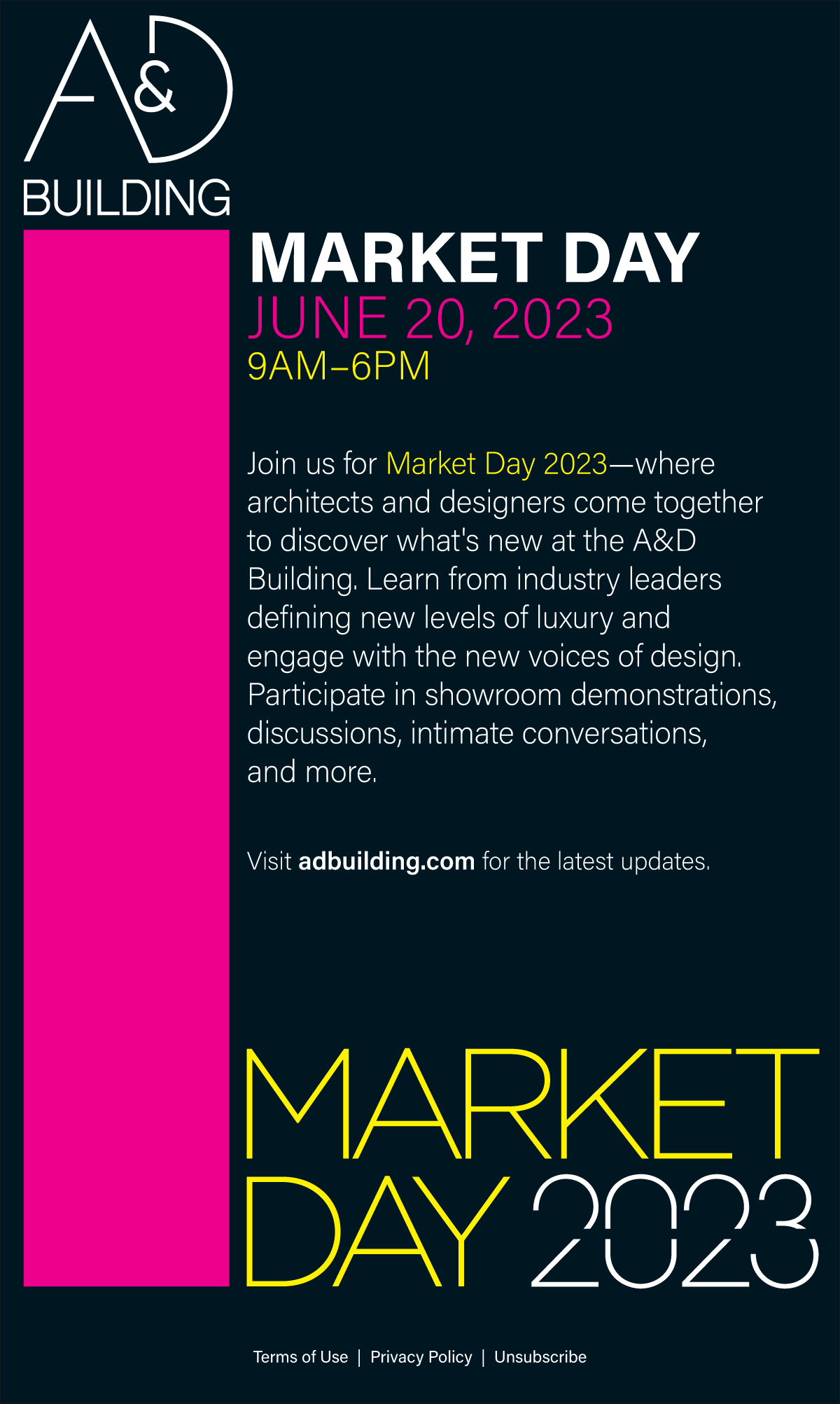 Join us for Market Day 2023—where architects and designers come together to discover what’s new at the A&D Building. Learn from industry leaders defining new levels of luxury and engage with the new voices of design. Participate in showroom demonstrations, discussions, intimate conversations, and more.