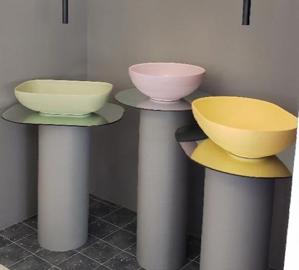 Hastings Bath showroom presents a first of its kind installation featuring the new Tuby Telaio Vessel collection. This new series is available in 44 different colors, three different sizes and in Juta, Well and Trendy textures.