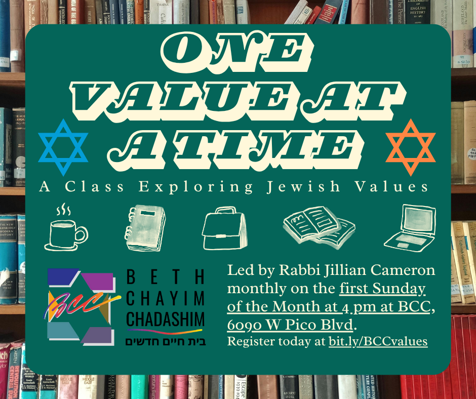 During the High Holy Days, Rabbi Jillian spoke about using our moral voices and living our values in real ways every day. Each month we will explore a different Jewish value from their origins in our texts to practical application in our lives now. Let’s strengthen our knowledge of our values together! Beginning November 2nd, in person at BCC, continuing the first Sunday of each month. To be led by Rabbi Jillian Cameron. RSVP form coming soon!