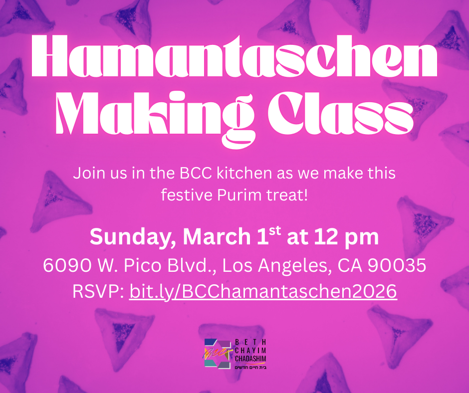Join us for our annual Purim shpiel, megillah reading, and more! Want to sign up to help with the festivities? If you want to be a megillah reader, a purim shpiel player, or a volunteer for the event, please reach out to the BCC office at bcc@bcc-la.org.