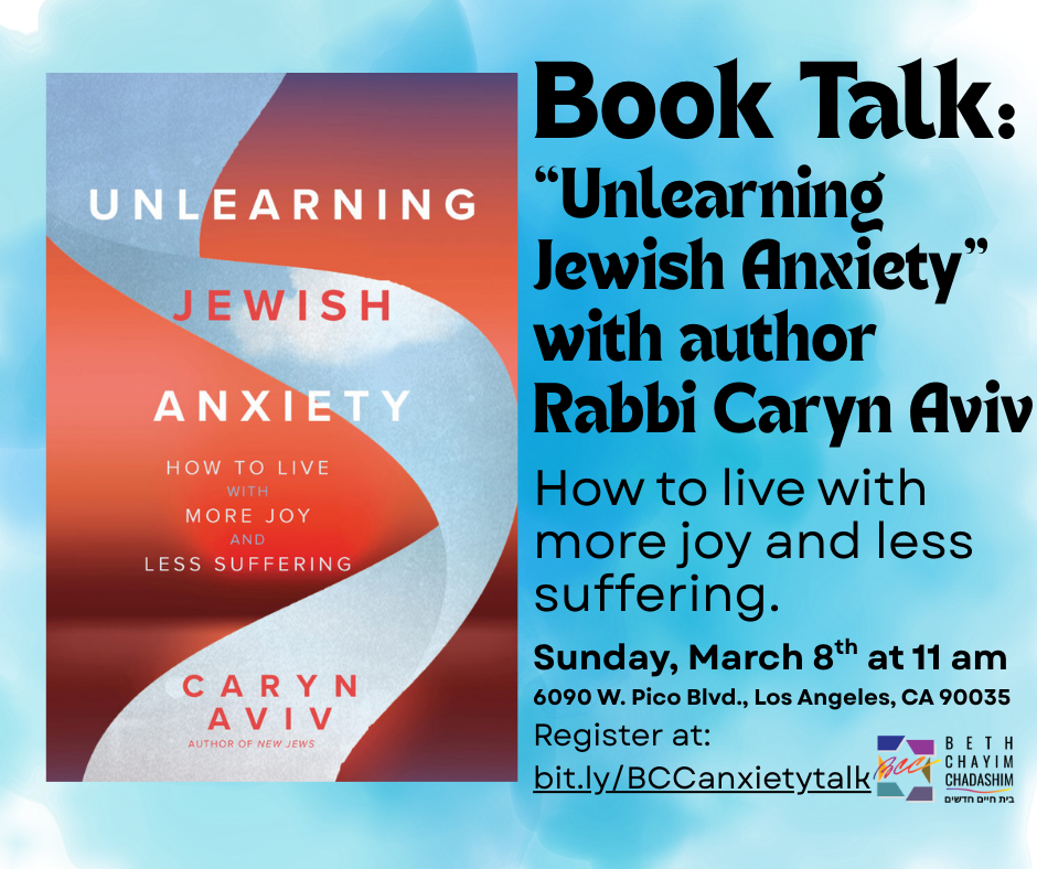 Feeling anxious lately about the state of the world and being Jewish? It’s not all in your head, and you’re not alone. Rabbi Caryn Aviv’s new book, Unlearning Jewish Anxiety: How to Live with More Joy and Suffer Less explores what anxiety feels like, and untangles some common Jewish anxiety habits about our safety, worth, and belonging in this difficult world. This interactive author event will describe what we face, how we got here, and how we can live more fully in the present moment with awareness, curiosity, and self-compassion. And hopefully, less suffering. Click here to RSVP!