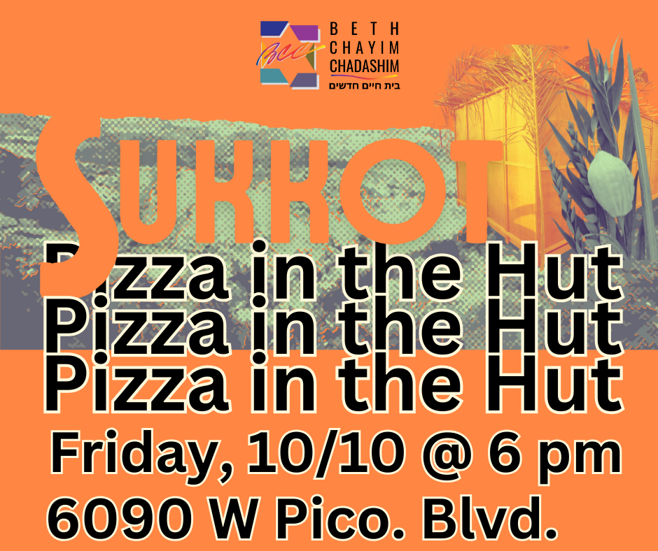 Join your BCC friends and family for a pre-Shabbat pizza party in BCC's beautiful Sukkah! There will be pizza! There will be gluten-free options! There will be salad! Don't miss out on this opportunity to dine in the Sukkah with your community!