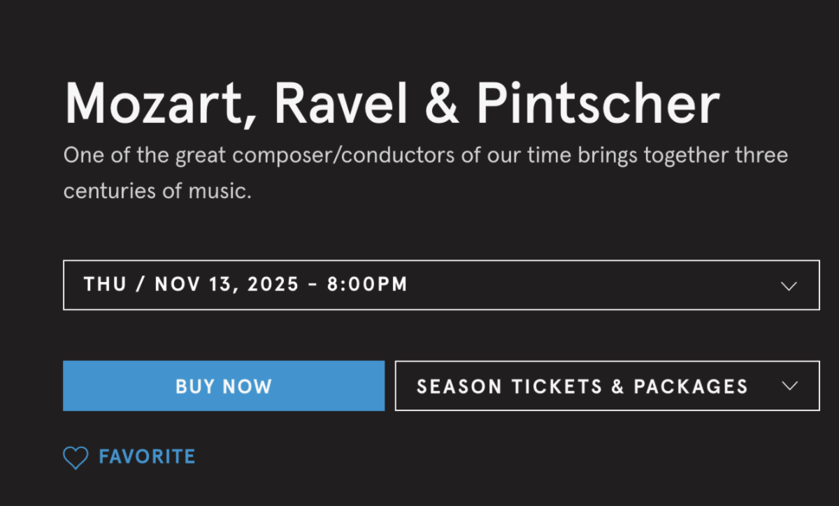 A pair of Ravel’s impressionistic masterworks bookend this era spanning concert, led by the prodigious Matthias Pintscher. Use the code SPWDCH for 20% off select seats for the November 13 performance. Click here to get your tickets!