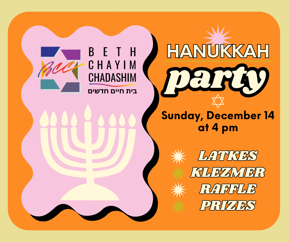 Psst! ... we've begun planning for the Hanukkah Party! If you're interested in being one of our latke makers please reach out to the BCC office at bcc@bcc-la.org!