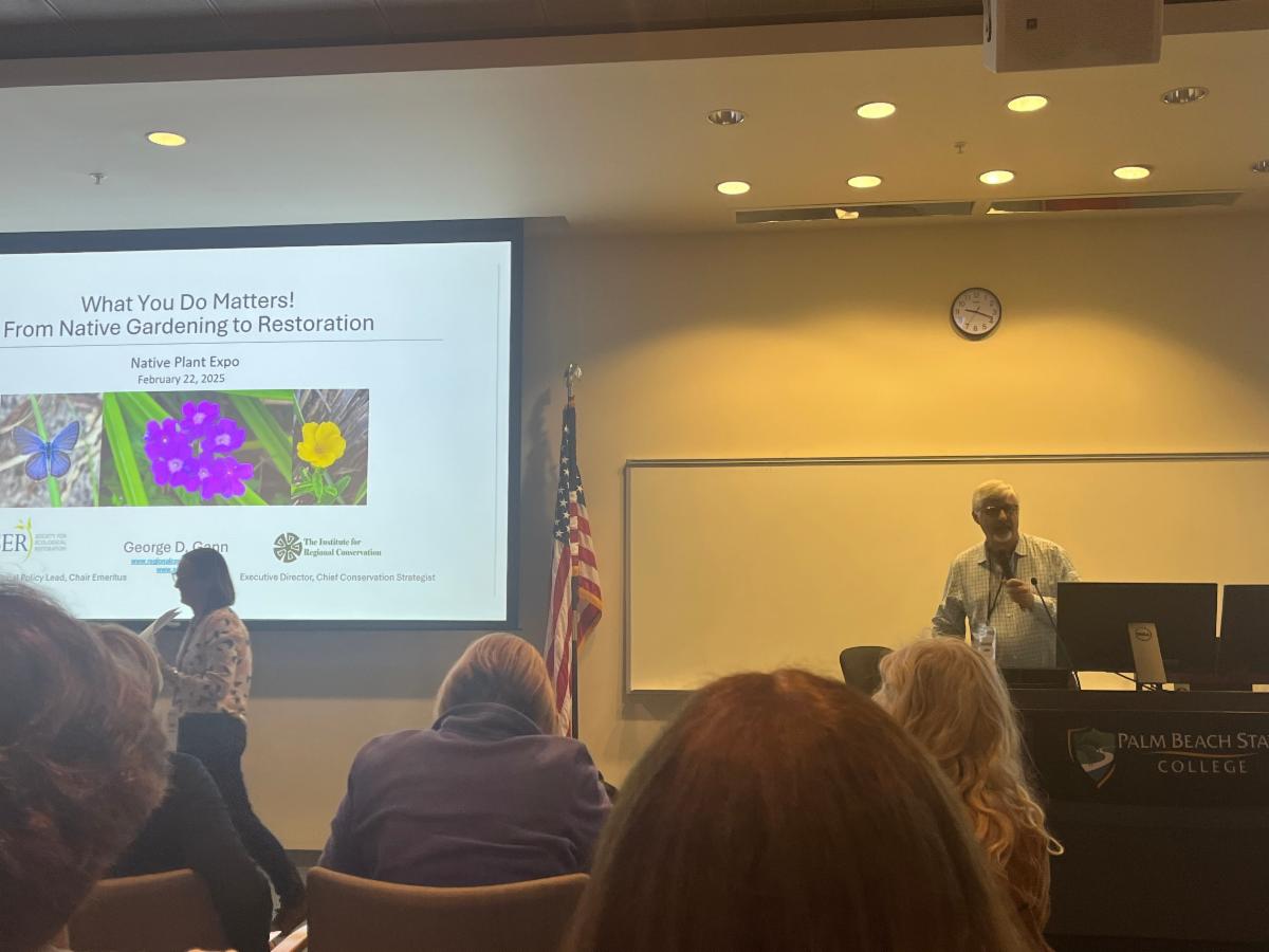 On Saturday, February 22, over 200 people gathered at Palm Beach State College, Palm Beach Gardens, for the first South Florida Native Plant Expo, with George Gann as the keynote speaker. The Palm Beach County Chapter of the Florida Native Plant Society brought in twenty expert speakers who gave over thirty presentations throughout the day, ranging from biological controls of invasive species to underutilized native trees and native replacements for common tropical plants.