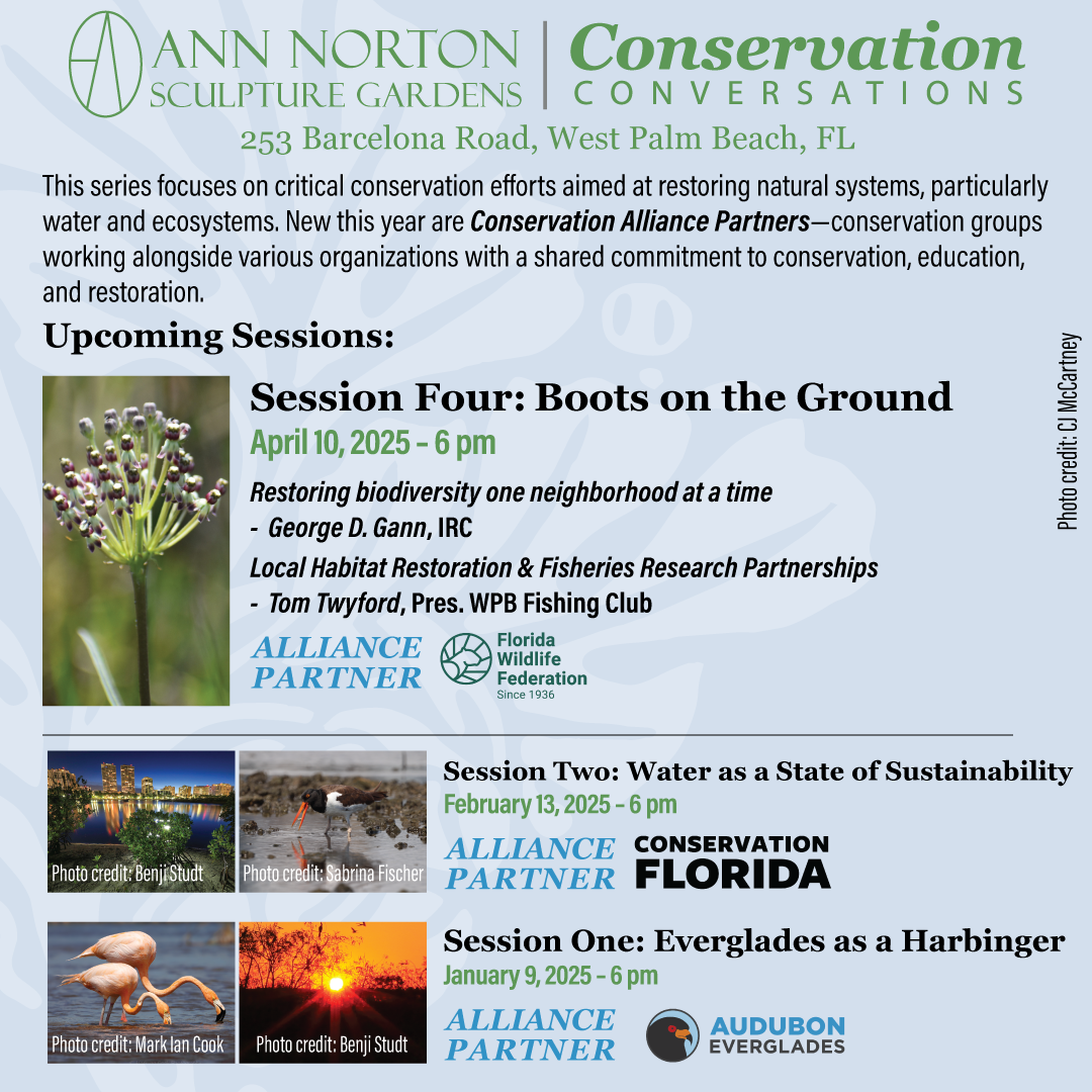 | | Check out these interesting events coming up at Ann Norton Sculpture Gardens. Our very own George Gann is the guest speaker on April 10th at 6pm. See the flyer for more details or click here. | |