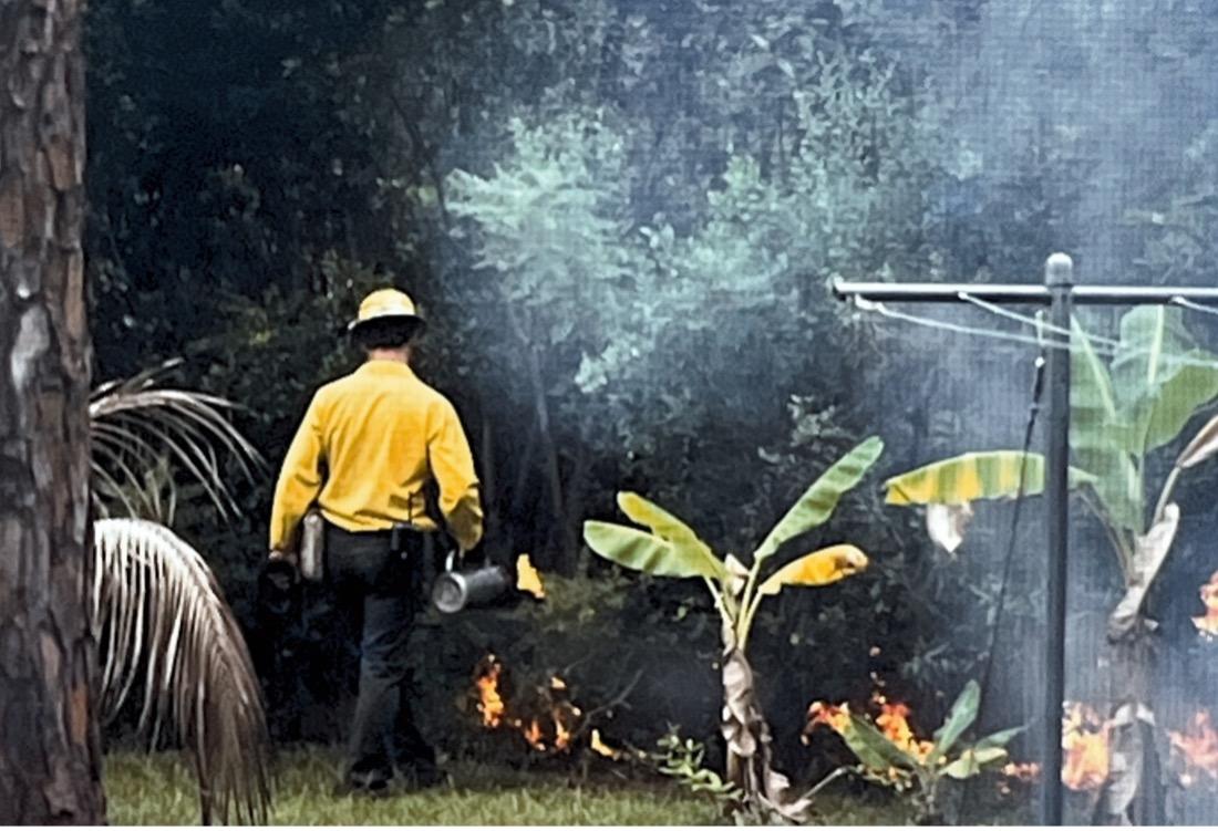 | | Prescribed burn in the residential area of Pine Island, Everglades National Park, 1981. Field crews, including prescribed burning and invasive species control teams, often comprise a high percentage of seasonal and other entry-level employees. Loss of these jobs will compromise the conservation and restoration of national heritage. | | |