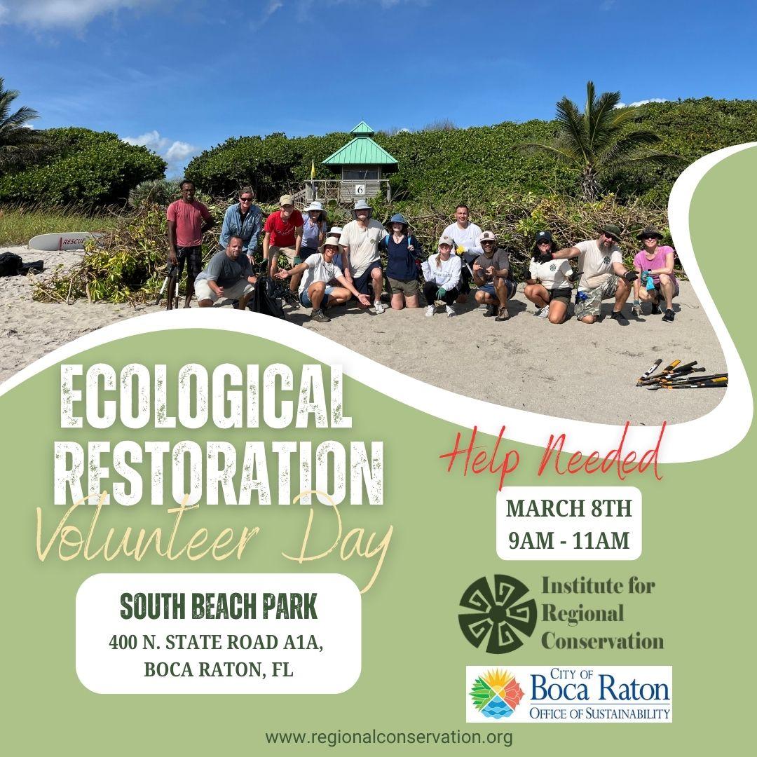 Join us for a volunteer day restoring South Beach Park in Boca Raton from 9am to 11am. We need your help to remove nonnative plants and install native plants to the beach dune system.