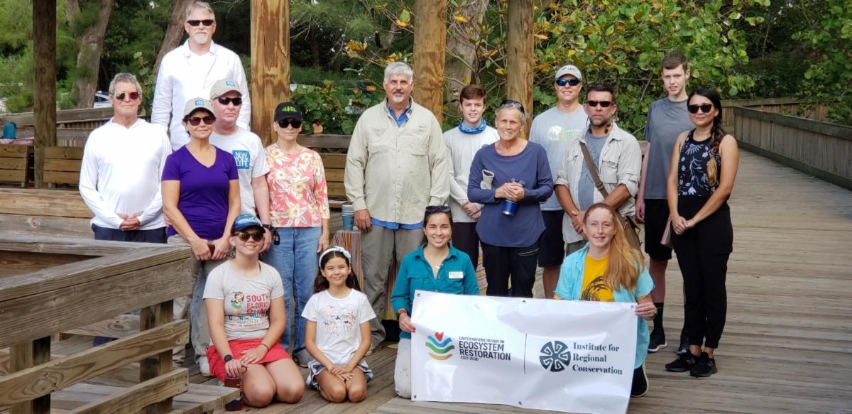 IRC staff and volunteers celebrating the launch of the United Nations Decade on Ecosystem Restoration at Atlantic Dunes Park in Delray Beach. |