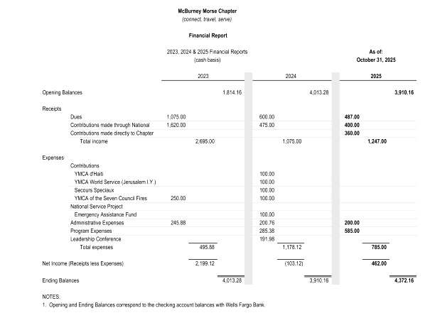 For many years, our chapter has supported important YMCA charities from our annual budget. In 2024, we sent $100 to five programs, two in the USA and three international ones. Here is a brief update on each. You can find more information on their websites and, if you wish, make an individual contribution as well. Thank you for continuing to help these programs.