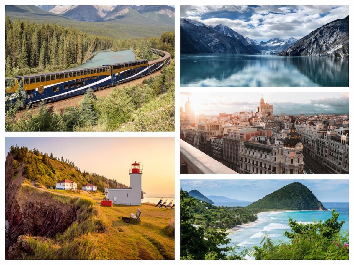 | | Left: The Rocky Mountaineer, Classic Canada and New England; Right: Alaska, Madrid, The Caribbean | |