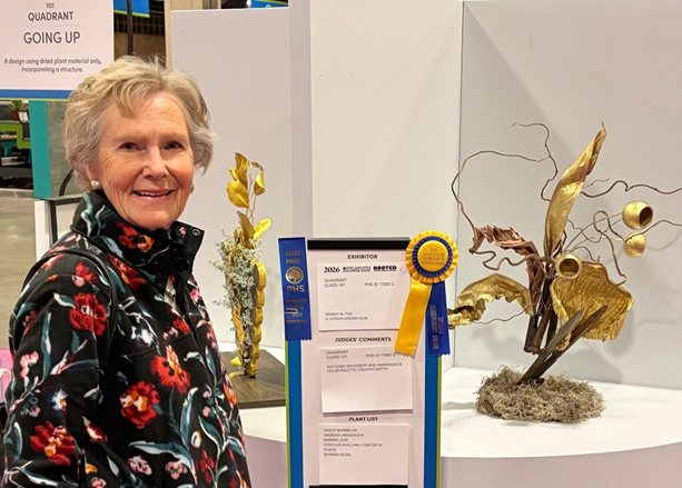 Wendy Fox, Gardener Extraordinaire: If it’s March, you can always find Wendy Fox at the Philadelphia Flower Show. Wendy is not only a Master Gardner, Show Judge, garden club mentor, she is also a participant. This year she took first place for her entry in the Quadrant Category using only dried plant material. Wendy also received a Special Achievement Award from the Garden Club Federation of Pennsylvania. Congratulations Wendy!
