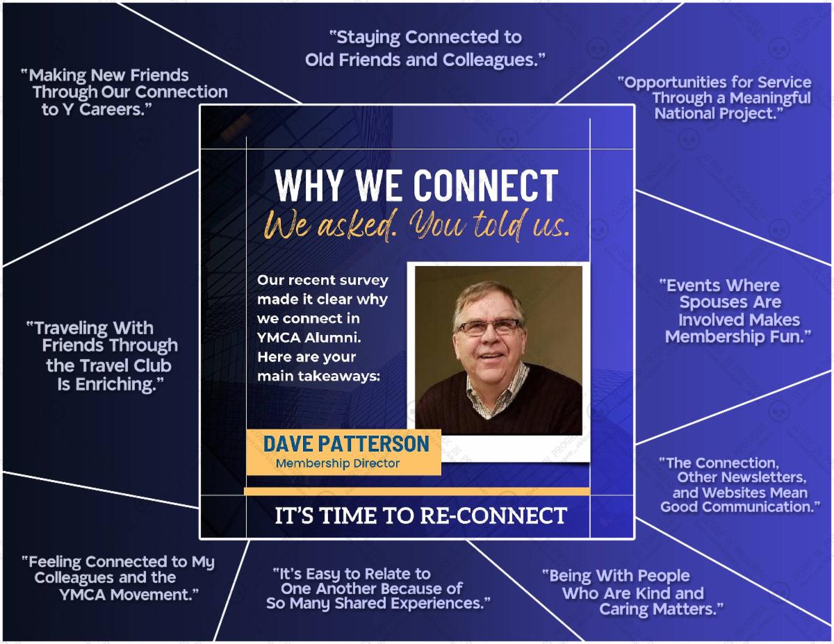 You recently received a mailing regarding renewal of your membership in YMCA Alumni. Our annual membership renewal campaign, now known as RE-CONNECT, is open online only for members who wish to use credit cards. Click the button below, fill out the form and hit SUBMIT.