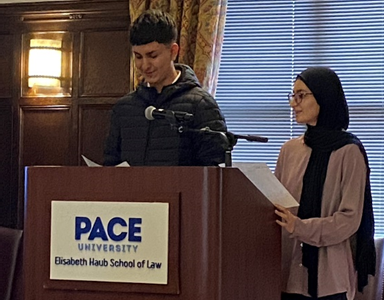 Junior Manahel Shuja said, “The visit to Pace Law allowed me to participate in activities that enhance my knowledge and understanding of what the life of a law student is like, as well as what a lawyer does on a daily basis. The whole experience was a very fun and unique one. I really enjoyed it.”