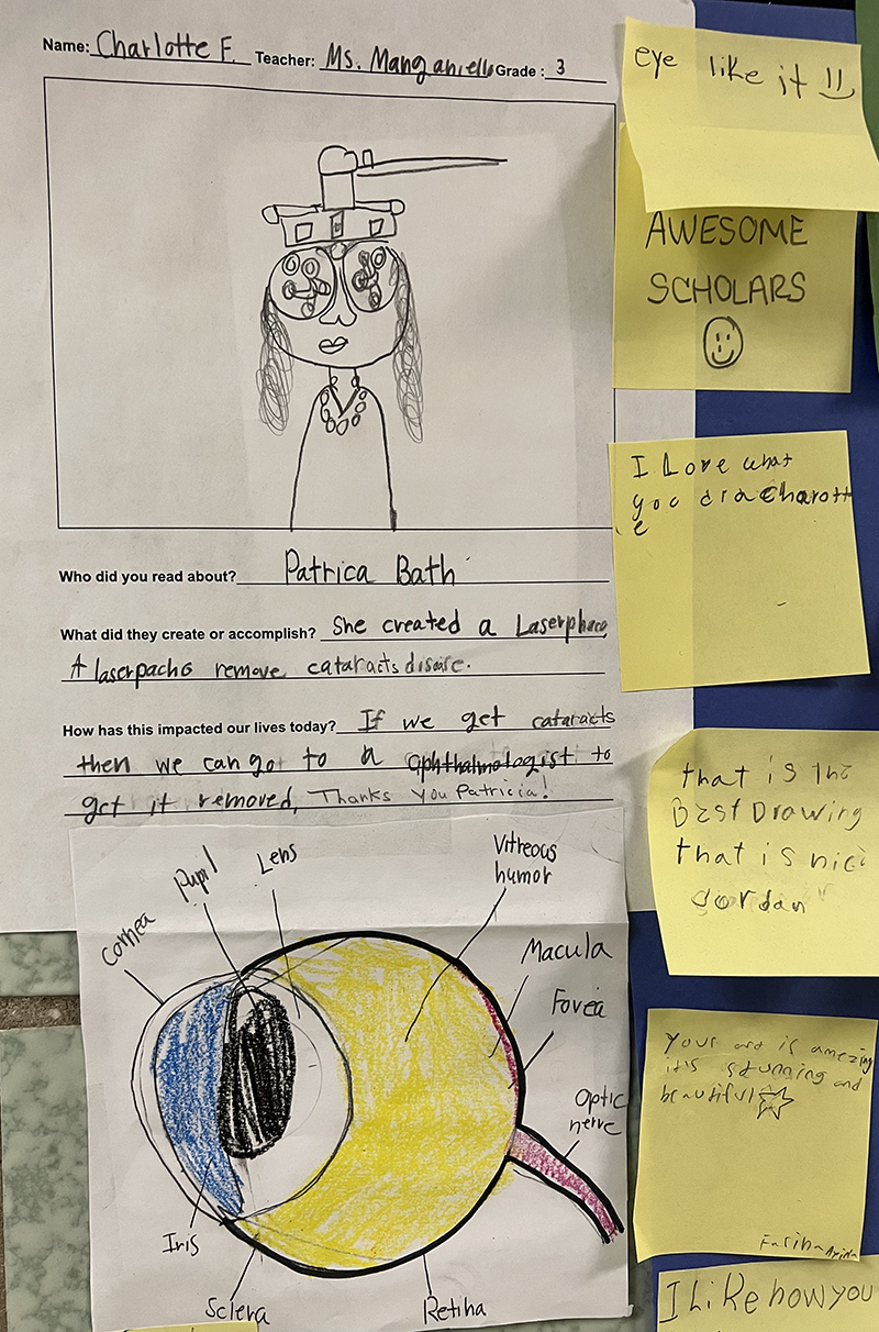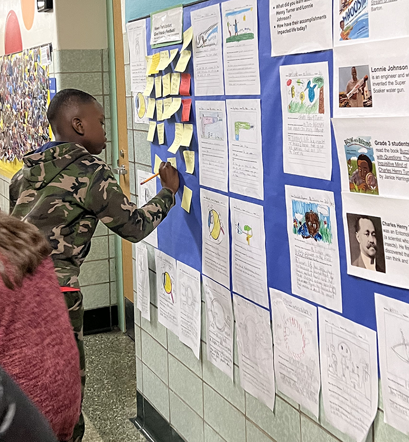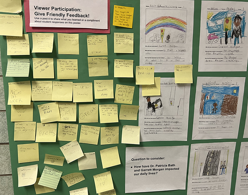The gallery walk showcased student responses to books they read, detailing the accomplishments of Black Americans whose valuable contributions have a lasting impact on our lives today.