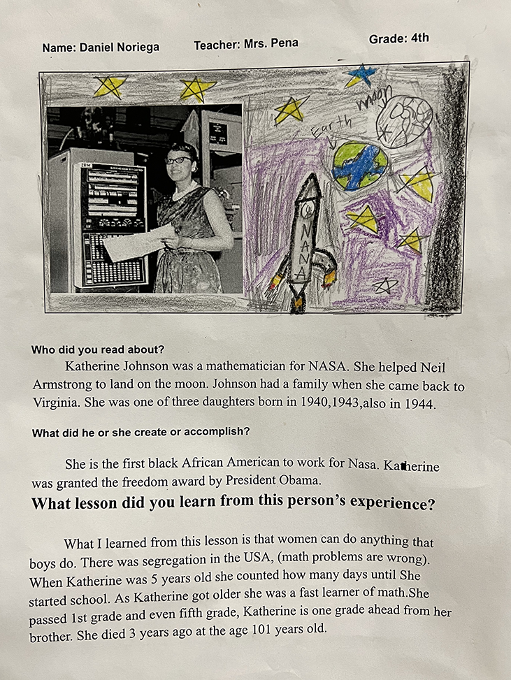 From a list of stories and activities that centered around the theme, “Continuing to Make History: How Black Americans Impact Our Everyday Lives,” students created responses that illustrated how these individuals have impacted our lives or identified lessons that could be learned from their experiences.