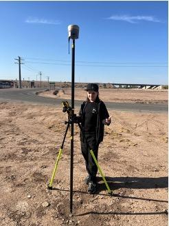 Dirk Nasland reports that his oldest son Dylan “has been wanting to come survey with me for a day and we finally had a good opportunity come up. He had a fun time and seemed to enjoy it. I was happy to have someone there to help out and chat with while we worked. He got to come out for a pretty basic site and see a typical day of surveying without any whiz-bang flashy stuff going on. Just a simple boundary, some aerial control and topo-check shots to confirm the aerial survey. I did, however, reward him with a Robux card on the way home, but only because he hadn’t asked for it. The boss hooked him up with a new hat and a shirt as well. Win-win. I’m not pushing him towards the profession, but he’s starting to show some interest and I’ll be more than pleased if he goes this route to be another 4th generation surveyor in the family.”