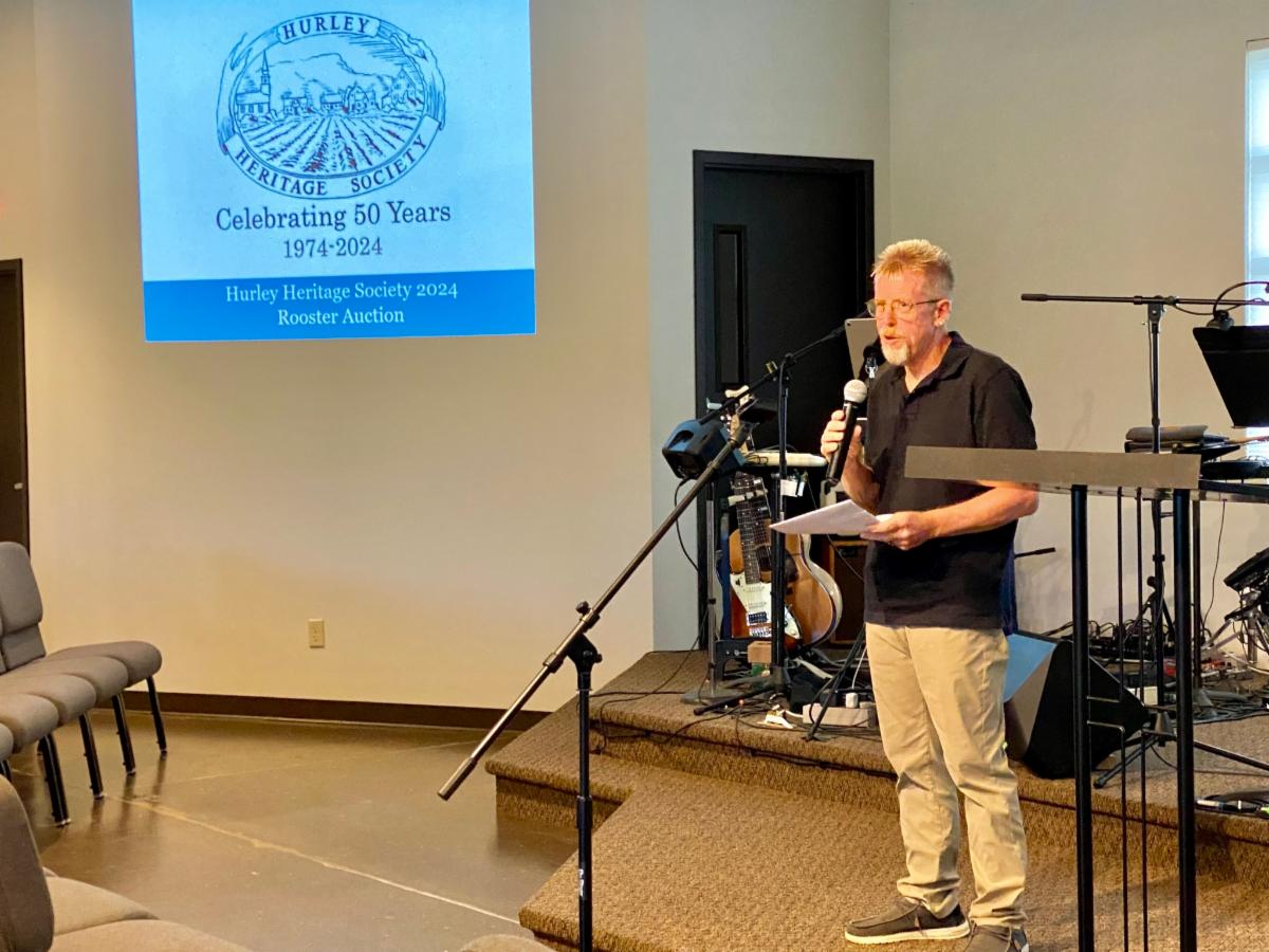 The first of our 3 events celebrating Hurley Heritage Society’s 50th anniversary was our long-anticipated Rooster Art Auction held on June 7th at Cross Point Fellowship Church. Hurley Heritage Day returns on September 21st with walking tours, music, food trucks vendors and much more. And on December 6th we are planning a fun, holiday themed Gala Evening of Dinner Theatre, which also honors Bruce and Gail Whistance for their countless contributions to HHS. Read on for more about all these events.