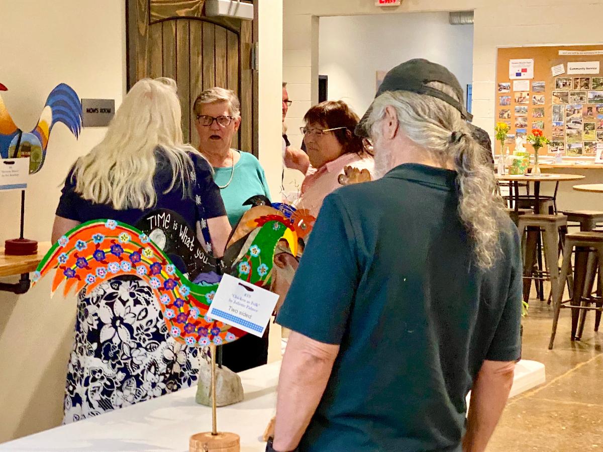 Our Auctioneer Mike Rice did an excellent job getting the roosters auctioned off to proud new owners. We are very fortunate to have such gifted and talented artists in our area. We thank them for donating their creativity to our fundraiser.