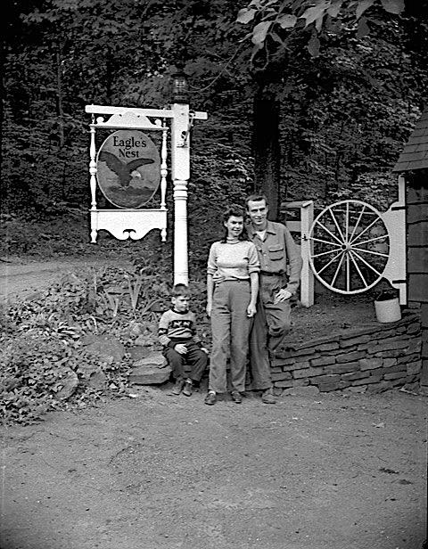 We do not know for certain who made the original sign. The most likely person is Clarence P. Hornung (American, 1899-1997) who lived in the Eagle’s Nest house prior to the Whistance family. Mr. Hornung was a noted graphic designer and illustrator who authored the two-volume art anthology Treasury of American Design (Abrams Books, 1972). Hornung also published a booklet The American Eagle in Art and Design (Dover Publishing, 1978) on the use of the eagle in American art and design. The image on the original and by then well-weathered sign was lost when Bruce’s father Jack Whistance repurposed the sign for his budding antiques business. We are fortunate to have Jack’s photographs to recall this slice of history.