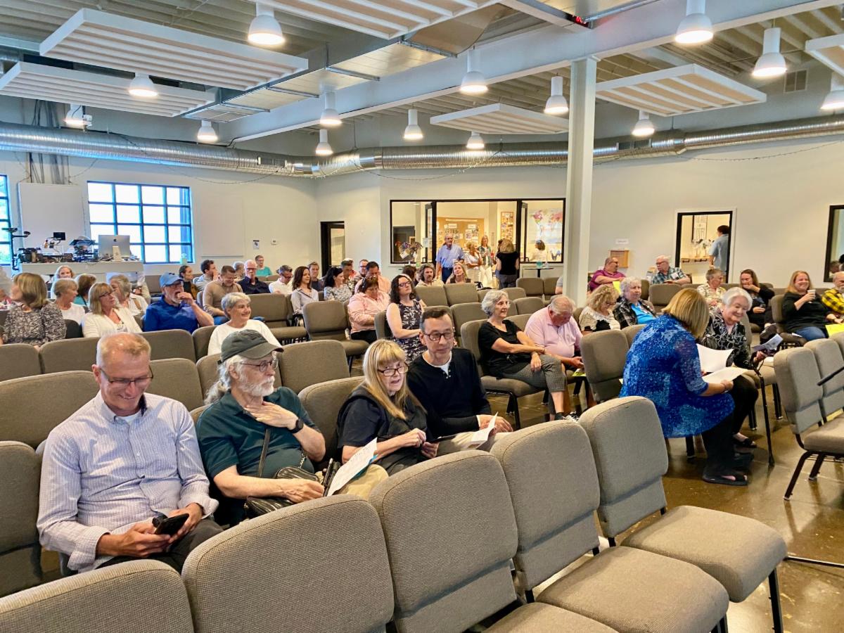 June 7th after a 9-year hiatus, in celebration of our 50th anniversary, we had our rooster auction. Twenty-three beautifully painted roosters were auctioned off at the Cross Point Fellowship Church. The roosters were hand crafted by Wayne Waligurski of Patentee Lighting. During the preview attendees (approximately one hundred) were treated to light appetizers from Santa Fe Woodstock, Stone Soup, Adams Fairacre Farms,