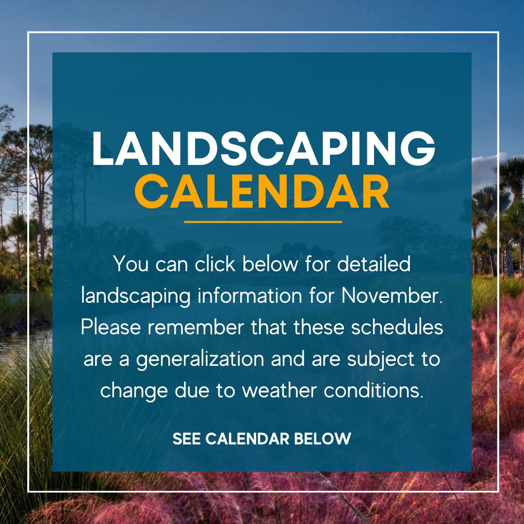 You can click below for detailed landscaping information for November. Please remember that these schedules are subject to change due to weather conditions.