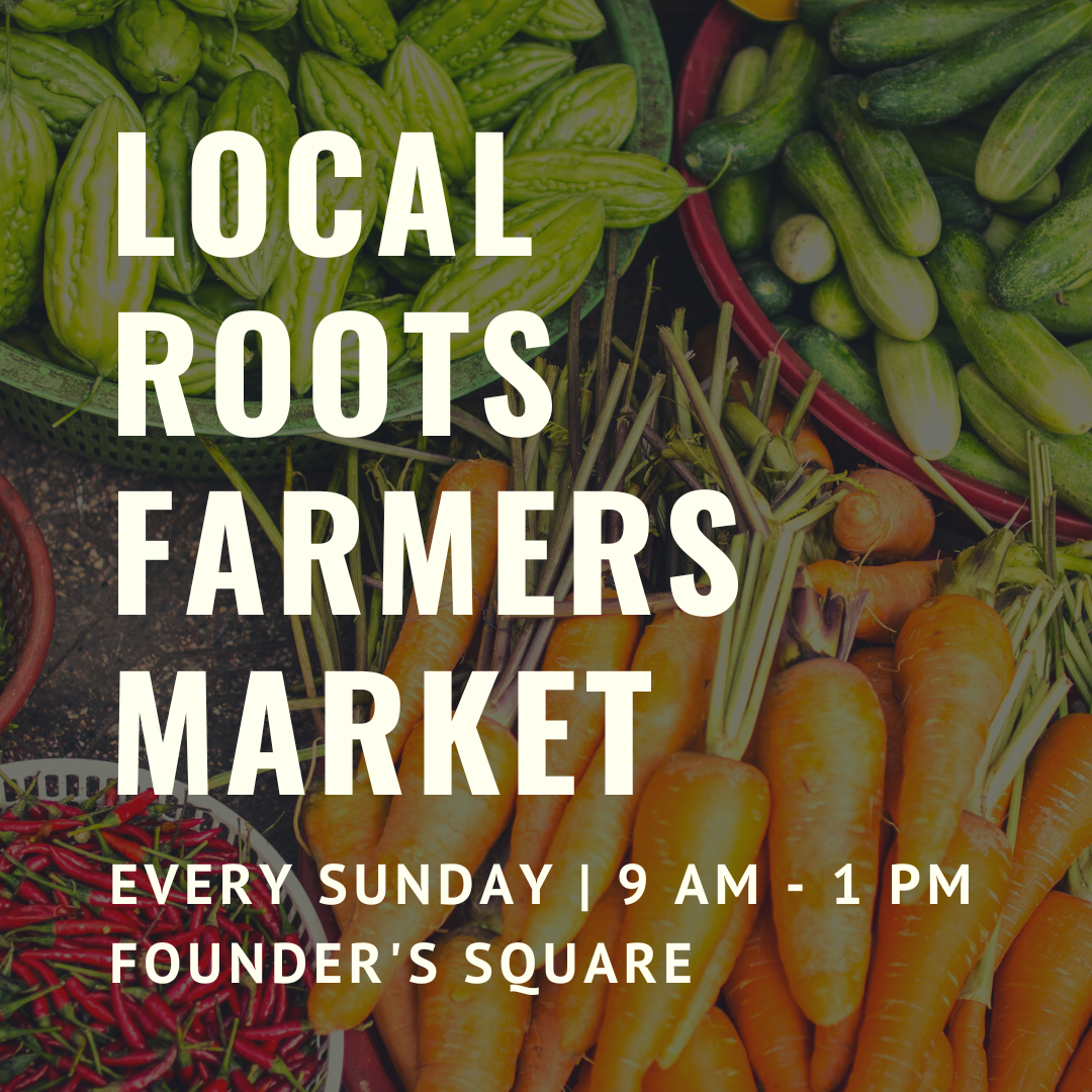 Every Sunday: Farmers' Market, 9 a.m. – 1 p.m., Founder's Square.