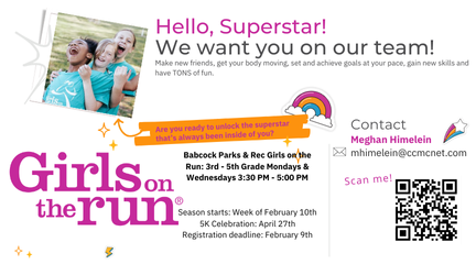 We’re excited to announce that Girls on the Run is back for another season this spring! Join us for an 8-week adventure packed with engaging lessons, group discussions, physical activities, and a Community Impact Project designed to make a difference in the world. Our dedicated coaches will be there to support you every step of the way, culminating in a fun and empowering 5K event with your team!