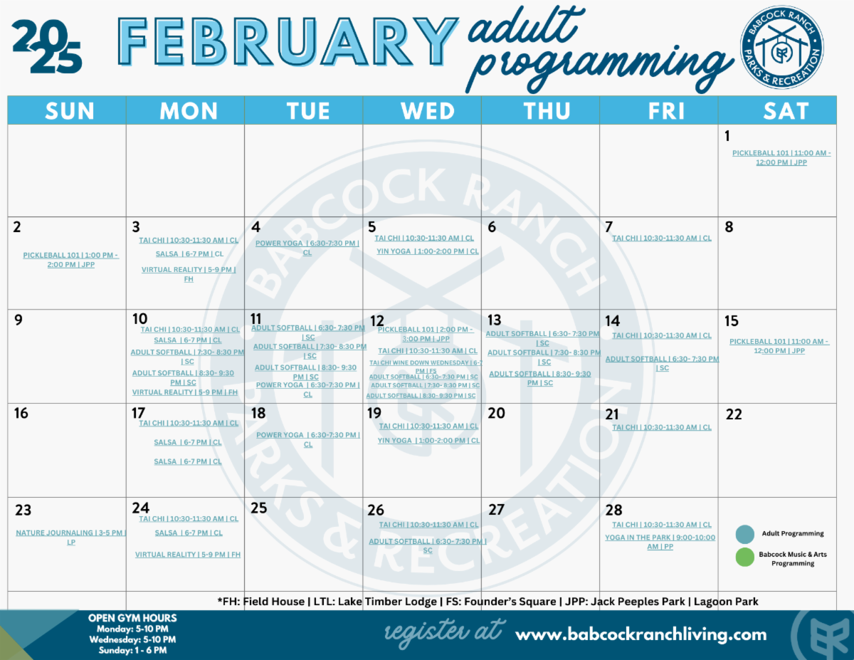 | | | February Programming Calendar | | Click the Image to Download the Parks and Rec Youth Programming Calendar | | Click the Image to Download the Parks and Rec Adult Programming Calendar | |