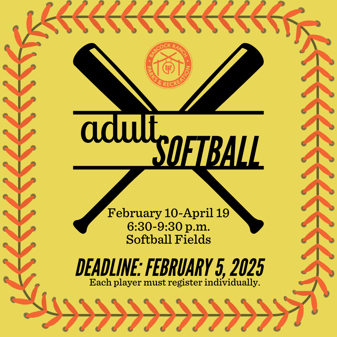 Parks & Rec is launching the inaugural 18+ Adult Coed Softball League! Registration is open until February 5, 2025, with a $100 fee per player and a $30 umpire fee per team. Teams will have 14 players, including at least 3 women. The first meeting is February 10 at 6:30 pm at the Softball Field, with practices starting the same day. Games begin February 26, with makeup games on Mondays for rainouts. The tournament is April 7 and 9. For updates, use the Team Reach App with code 2025Coed.