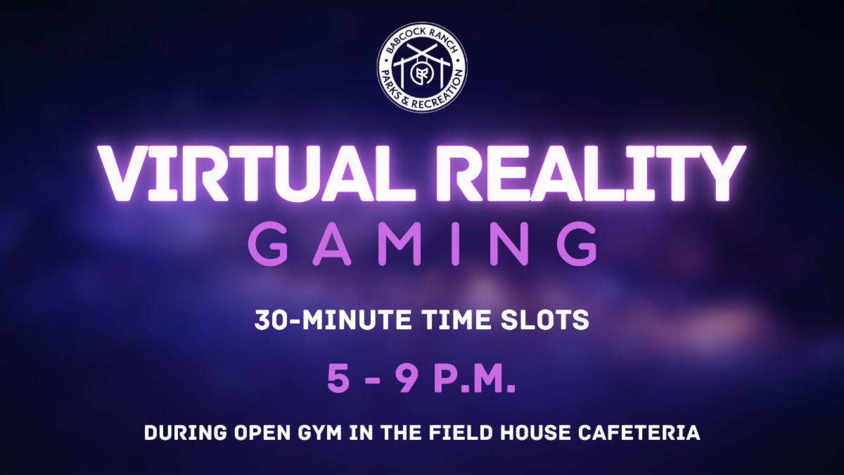 Babcock Ranch Parks and Recreation is offering VR Gaming at Open Gym in the Cafeteria on Mondays, starting in February! Enjoy VR gaming with Meta Quest 3. Members can sign up for 30-minute time slots from 5 to 9 PM. Participants under 11 years of age must be accompanied by an adult.