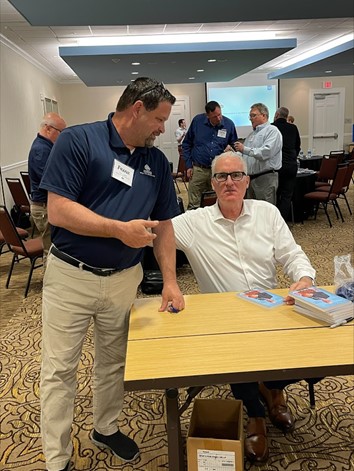 Matt Doherty stayed after his presentation and signed his book for all the attendees. His is pictured with Frank Quieti and was even gracious enough to pose for a picture with die hard Duke fan, Robin Stegall.