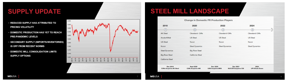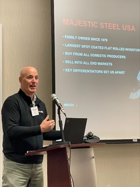 Majestic Steel is a Cleveland-based steel processor specializing in cold rolled, galvanized, aluminized, galvalume, galvannealed, and pre-paint steels. Kevin discussed current factors that are affecting supply, demand and costs. His presentation covered both domestic and international factors that were driving demand and affecting steel manufacturing costs. He also presented Majestic’s projected headwinds and tailwinds for their 2024 outlook. Kevin Ginley can be contacted here.