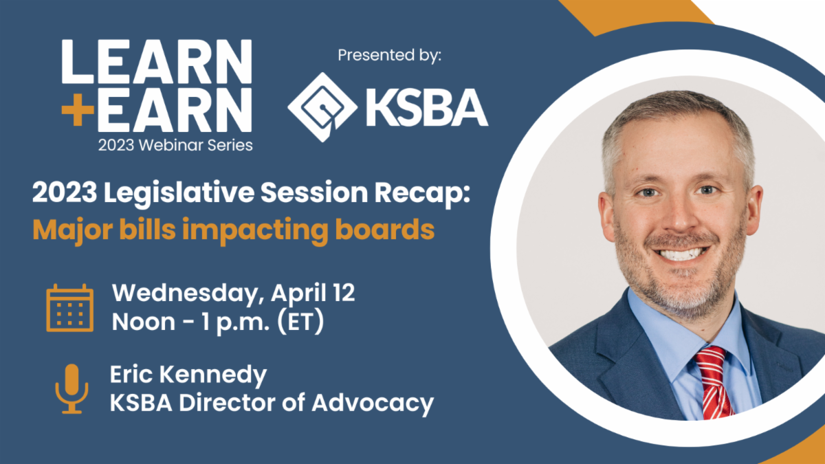Back by popular demand, KSBA’s 2023 Learn and Earn Webinar Series kicks off Wednesday, April 12 at noon (ET). Join us for an hour-long legislative recap.