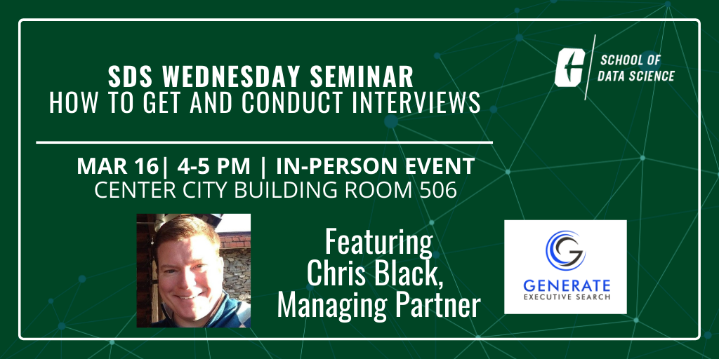 Join UNC Charlotte’s School of Data Science and Chris Black for a session on creating an impactful resume and getting interviews. We'll be going over how to create an impactful resume as well as how to get and conduct interviews with companies you want to work for. The seminar will be held in room 506 in the Center City Building. |