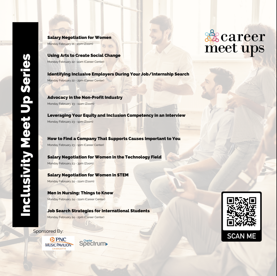 The University Career Center is excited to announce the Disability:IN North Carolina / CommunAbility mentoring program is ready for its third class. The program matches mentors to UNC Charlotte students with disabilities for mentoring sessions that take place throughout the academic year here at UNC Charlotte. The goal of CommunAbility mentoring is to create an inclusive and productive community by expanding economic opportunity and financial literacy for students and young adults with disabilities through meaningful relationships with mentors in industry. If you, or a student you know, with a disability might benefit from this program, apply or reach out to Xuan for more information.